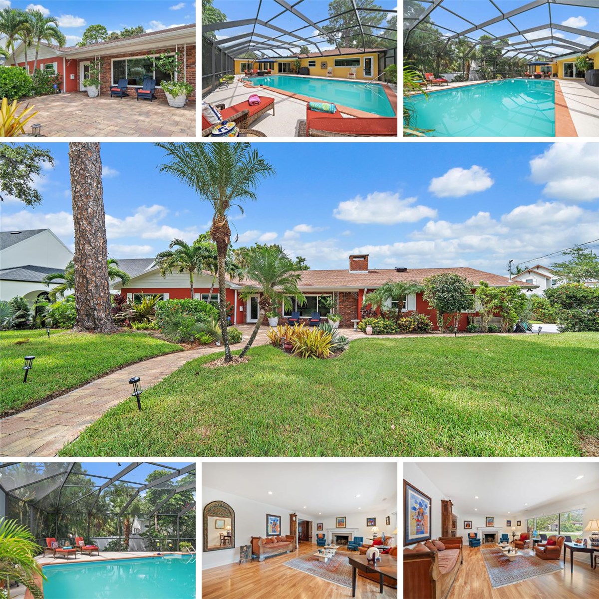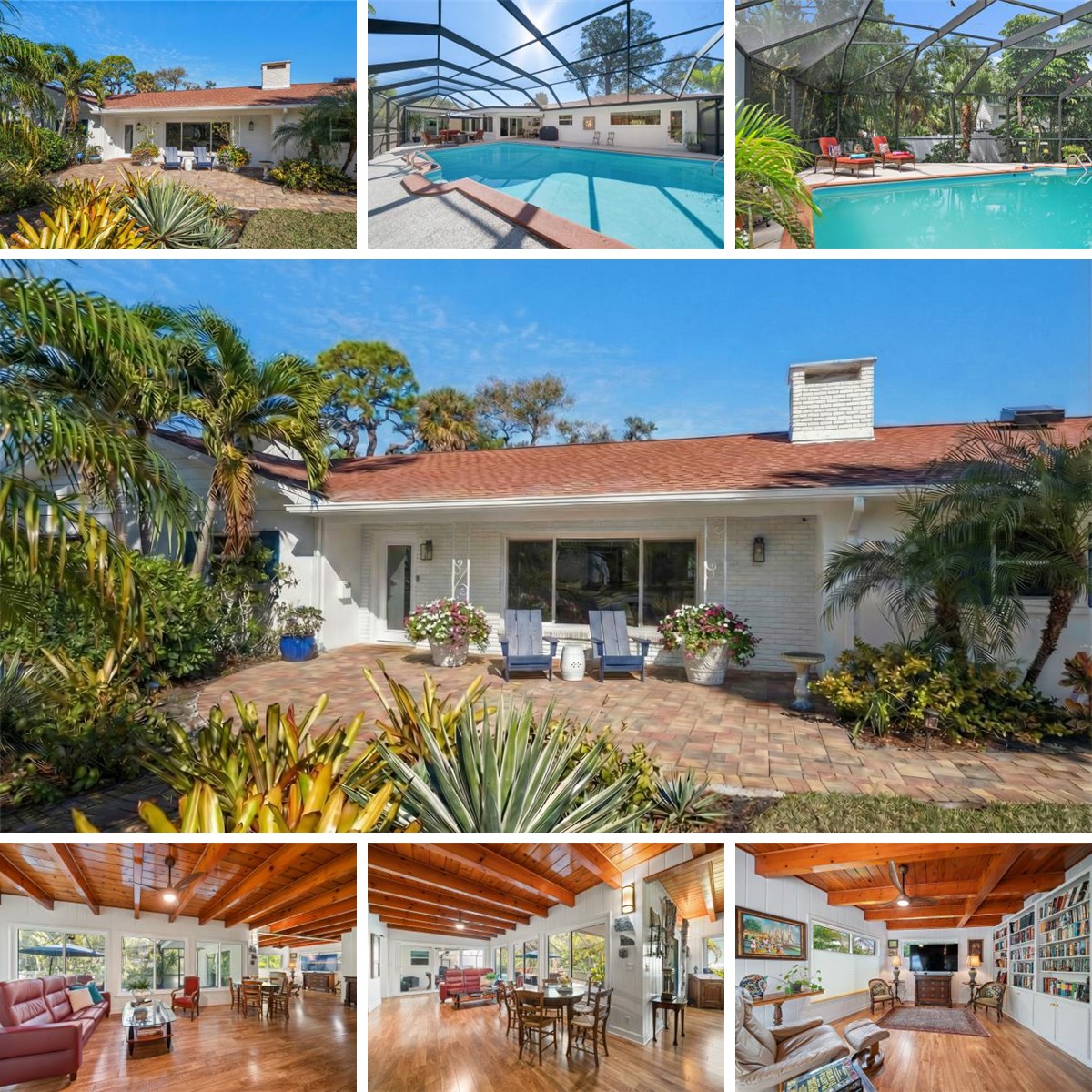 Move-in ready and perfectly positioned in the heart of beautiful Belleair, this stunning home offers refined Florida living just one block from the water and beautiful Winston Park, yet sits high and dry in a non-flood zone. Bursting with curb appeal, this meticulously maintained home features tropical native landscaping, a newly pavered front walkway and patio, and a welcoming entryway. Inside, a bright and open floor plan is enhanced by designer finishes, neutral luxury vinyl flooring, and a seamless flow between spacious living areas. The living room is filled with natural light, boasts electric blinds, and is anchored by a striking wood-burning fireplace, while the adjacent dining room connects effortlessly to the gorgeous white kitchen with stainless steel appliances, granite countertops, custom tile backsplash, wine fridge, and pass-through to the pool. The family room stuns with white paneled walls and soaring pine ceilings with exposed beams, creating an unforgettable atmosphere. Sliders open to a private, lush backyard oasis, where you will find expansive outdoor living that is a perfect blend of luxury and functionality, including 2 distinct covered areas, each offering a unique retreat, and a large shimmering pool with a 10 foot deep-end. Encasing the pool is a soaring screen enclosure providing protection from leaves and insects while maintaining an open, breezy atmosphere. The primary suite is a peaceful retreat with a walk-in custom closet, natural light, private glass door to the pool, and an ensuite featuring a furniture-inspired vanity and walk-in shower. Additional bedrooms are equally well appointed with custom closets, and built-ins. Extras include a 3-car garage with new custom flooring, impact windows and sliders, whole house generator, and electric blinds, Situated in one of Pinellas County’s most desirable neighborhoods, you're just minutes from two private golf clubs, boutique shopping, local dining, and the area's most beautiful beaches. Don’t wait—this Belleair beauty won’t last long!
